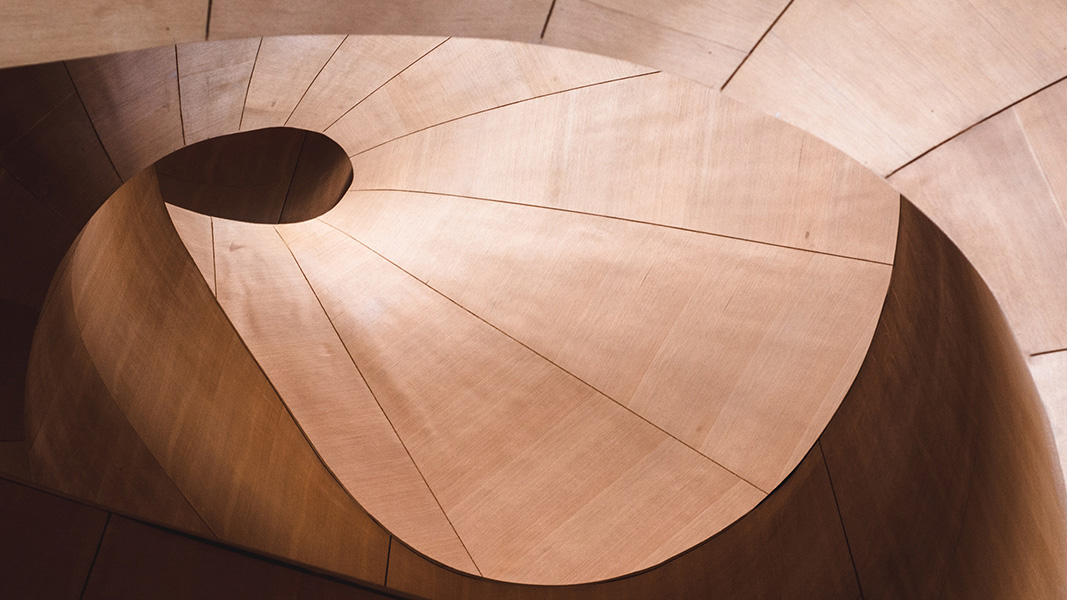 Cornes distinctives, incurvées dans toutes les directions, sans angle aigu visible - microbillées avec une touche d'or rose pour renforcer le contraste.